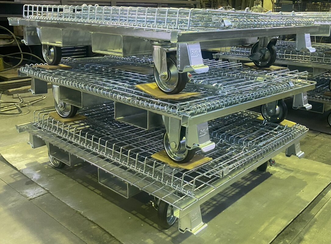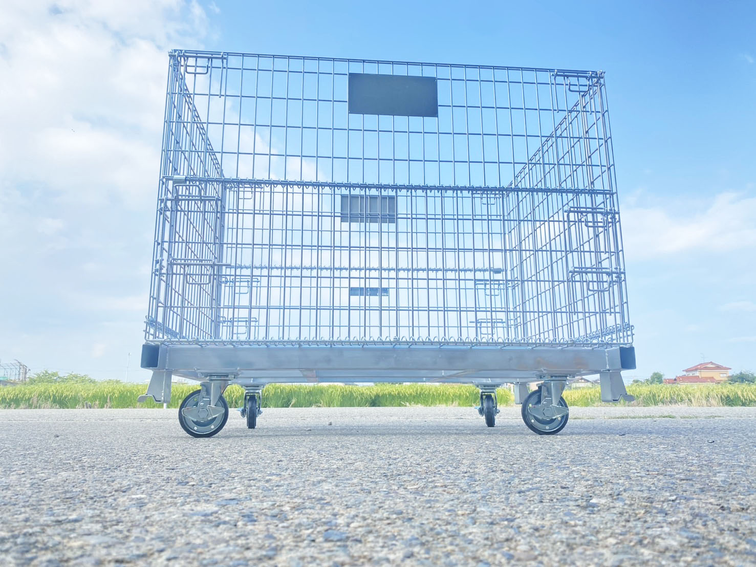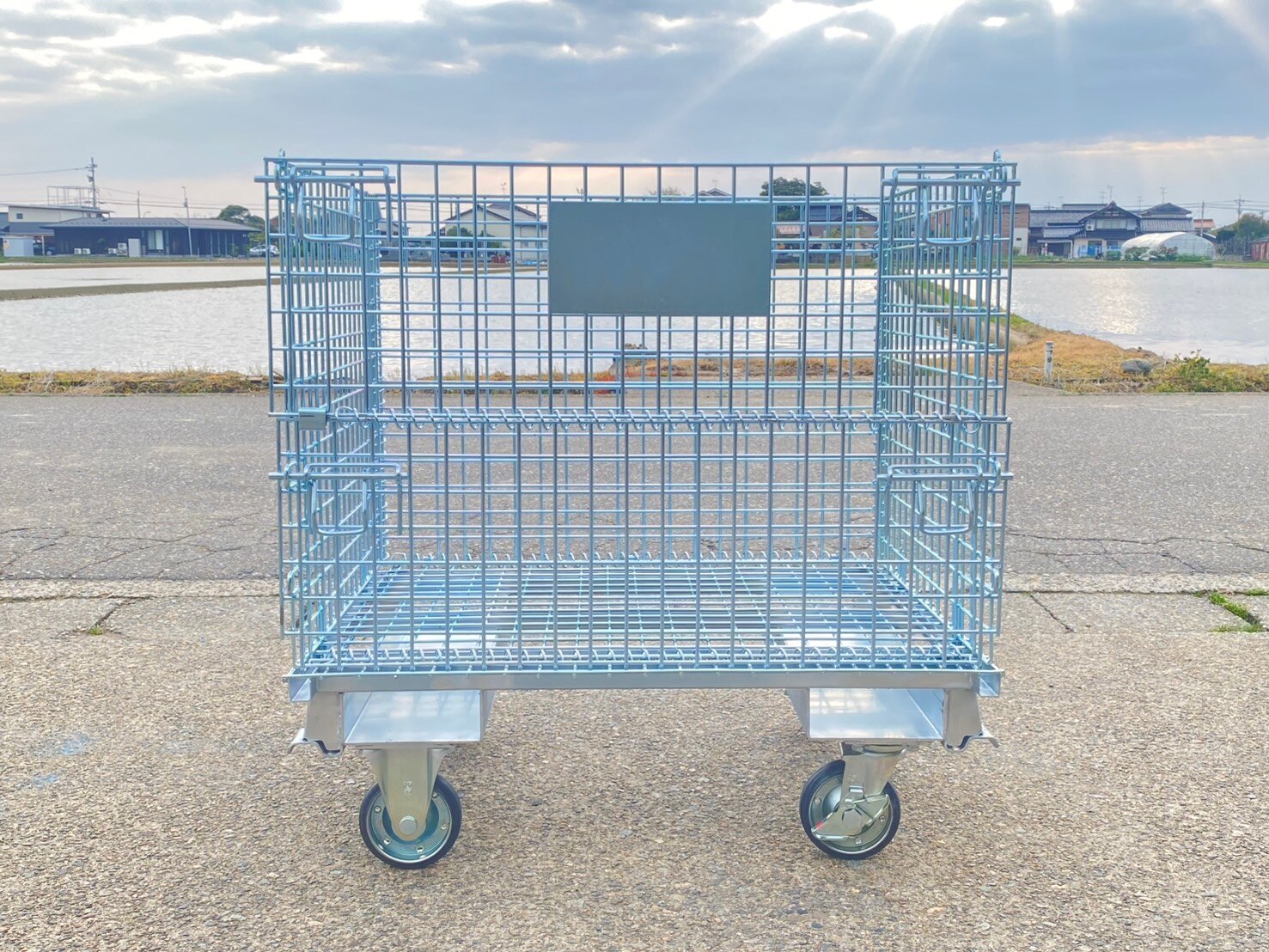 お客様のご要望に合わせた仕様で、オプション追加工・製作したメッシュパレットの一例です。フォークガイド・車輪(キャスター)付・フルオーダー製作など、用途に合わせた商品を提案し、製作させて頂きました。
